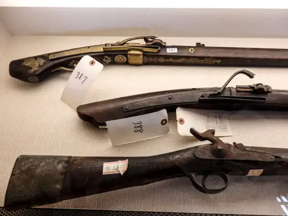 Around two centuries ago, the Kanou family used to be a gunsmith. They were engaging in manufacture of guns and spears following the instructions given by the feudal lord of Iwamura. Today, guns that were made in those days are exhibited.