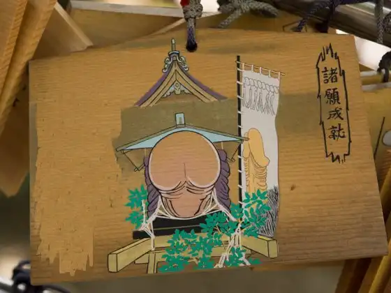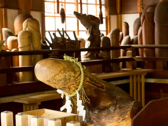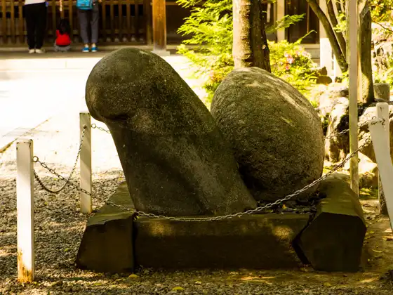 In this shrine, you can see many sexual symbols of men. However, they are not very real and serious. They are huge and rather funny.