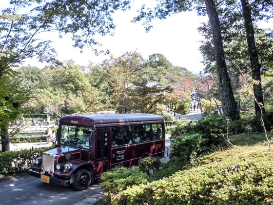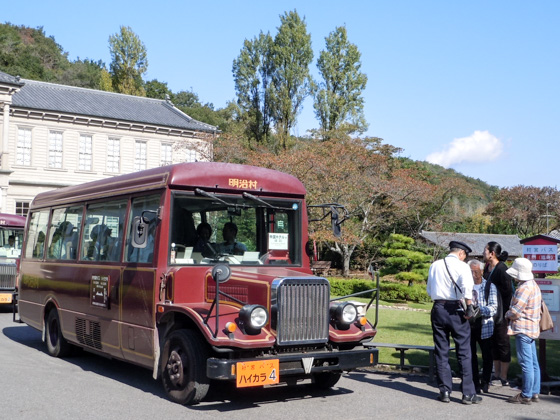 An antique style bus that runs throughout the Museum Meiji-mura.