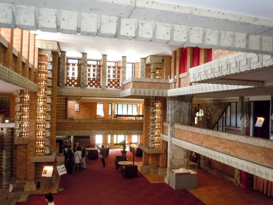 The building was designed by Frank Lloyd Wright, the great American architect of the 20th century, and was completed in 1923 after a four-year construction period. It is often used as a shooting place for dramas and TV ads. The center of the main lobby has a three-story hall. There is a coffee shop on the 2nd floor to relax and enjoy the ambience. (Closed on weekdays between December 1 and end of February [excluding the New Year's Holiday].)