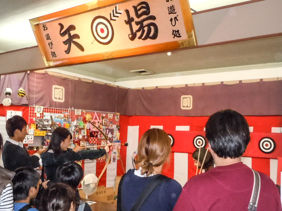 Experience the Japanese archery at the "Yaba" and shooting game, "Shateki". (At the 4-chome district. 300 yen for each play. *Only on Saturdays, Sundays, and public holidays between March and October.)