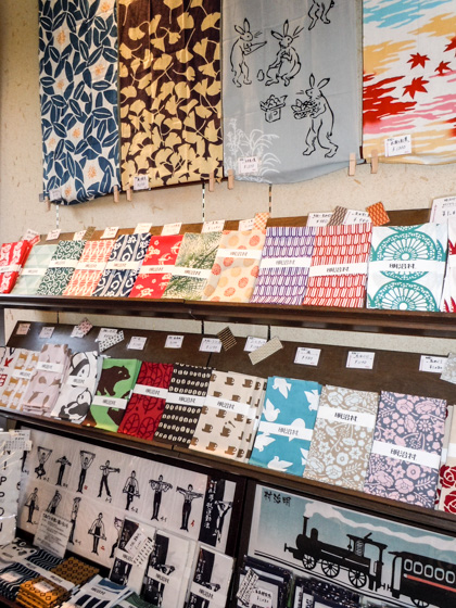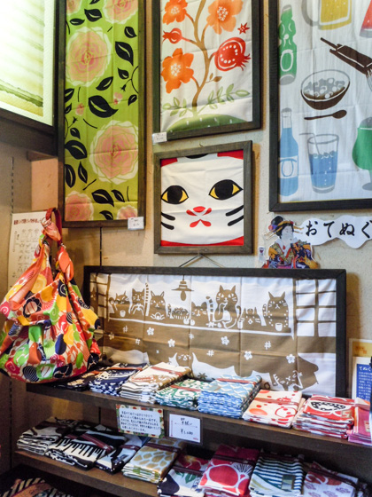 The store deals with small Japanese goods, accessories, and ceramic products. The Tenugui towels, small-sized Furoshiki cloth and handkerchiefs (500 yen to 1,000 yen per piece) are available in different designs and colors. The Arimatsu Shibori tie-dyeing products, traditional art craft of Nagoya are also popular. (If you like to visit Arimatsu, see this page.)