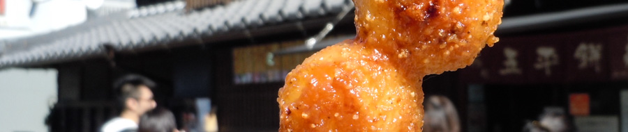 犬山城周围的有名小吃都是用竹签穿起来的。40多个店铺为您提供各种各样的小吃(猪排串、丸子串等)。把小吃拿在手里,边走边吃也是一种愉快的享受。