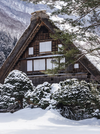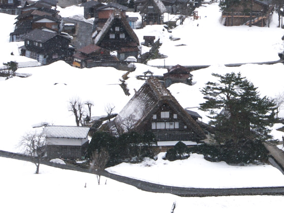 白川乡是一个坐落着110多间合掌民居的幽静山村集落。1995年被指定为联合国教科文组织的世界遗产。合掌式建筑是日本民居的一种。其特点是屋顶陡斜呈合掌形状,铺着茅草,房梁为木头。这些民居中既有销售特产的商店,也有可以住宿的民宿,还有旅客可以进去参观的民宿 – 和田家。
